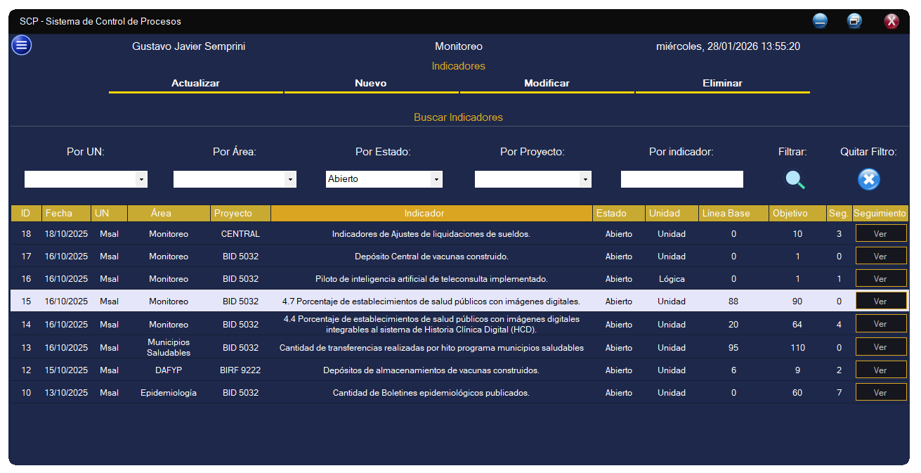 La siguiente galería de imágenes proporciona una visión general de un Sistema de Control de Procesos (SCP), desarrollado como proyecto personal, que integra diversas funcionalidades esenciales para la gestión empresarial.